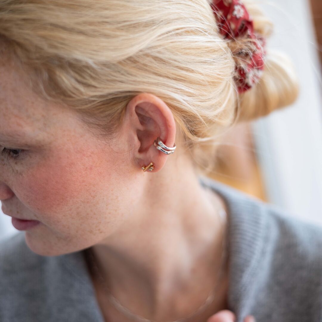 Jak działa nausznica bez przekłuwania? Jej mechanizm opiera się na delikatnym, precyzyjnym docisku sprężystego metalu do chrząstki ucha. Dzięki temu utrzymuje się na miejscu poprzez dopasowanie, a nie ingerencję w skórę. W praktyce oznacza to, że nie ma potrzeby przechodzenia przez proces gojenia, nie pojawia się ryzyko infekcji czy podrażnień związanych z przekłuciem, a samą nausznicę można łatwo przesuwać i zmieniać jej ułożenie w zależności od stylizacji czy nastroju. Dzięki temu nausznice są po prostu bardziej elastycznym i wygodnym rozwiązaniem niż klasyczne kolczyki.